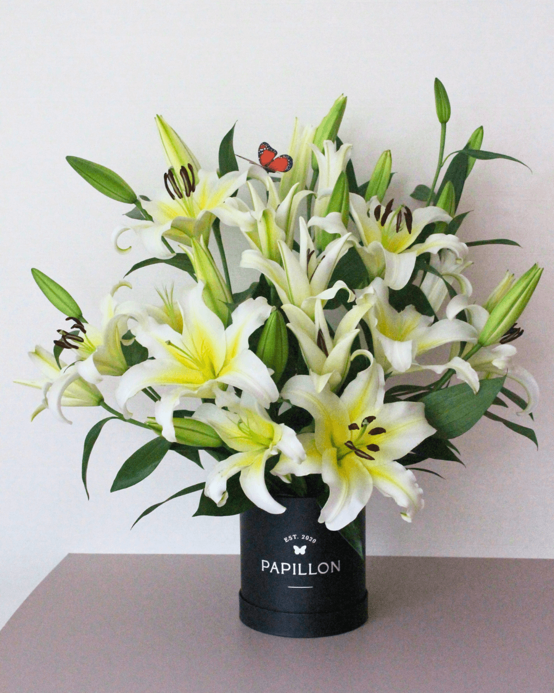 Descubre nuestros arreglos con lirios. Estos representan pureza, serenidad y elegancia, por lo que son ideales para momentos y celebraciones importantes.